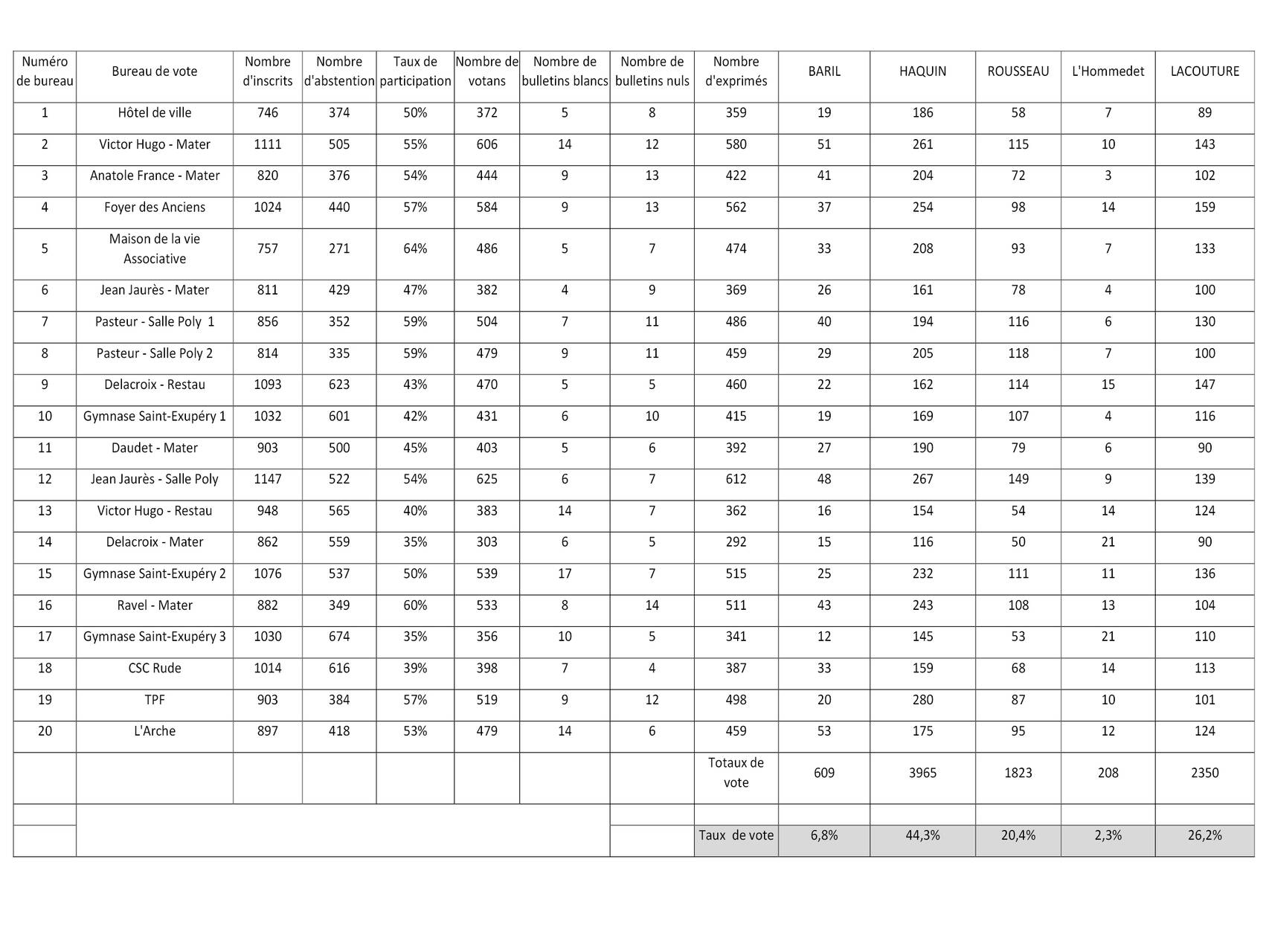 > Tableau des résultats par bureau de vote