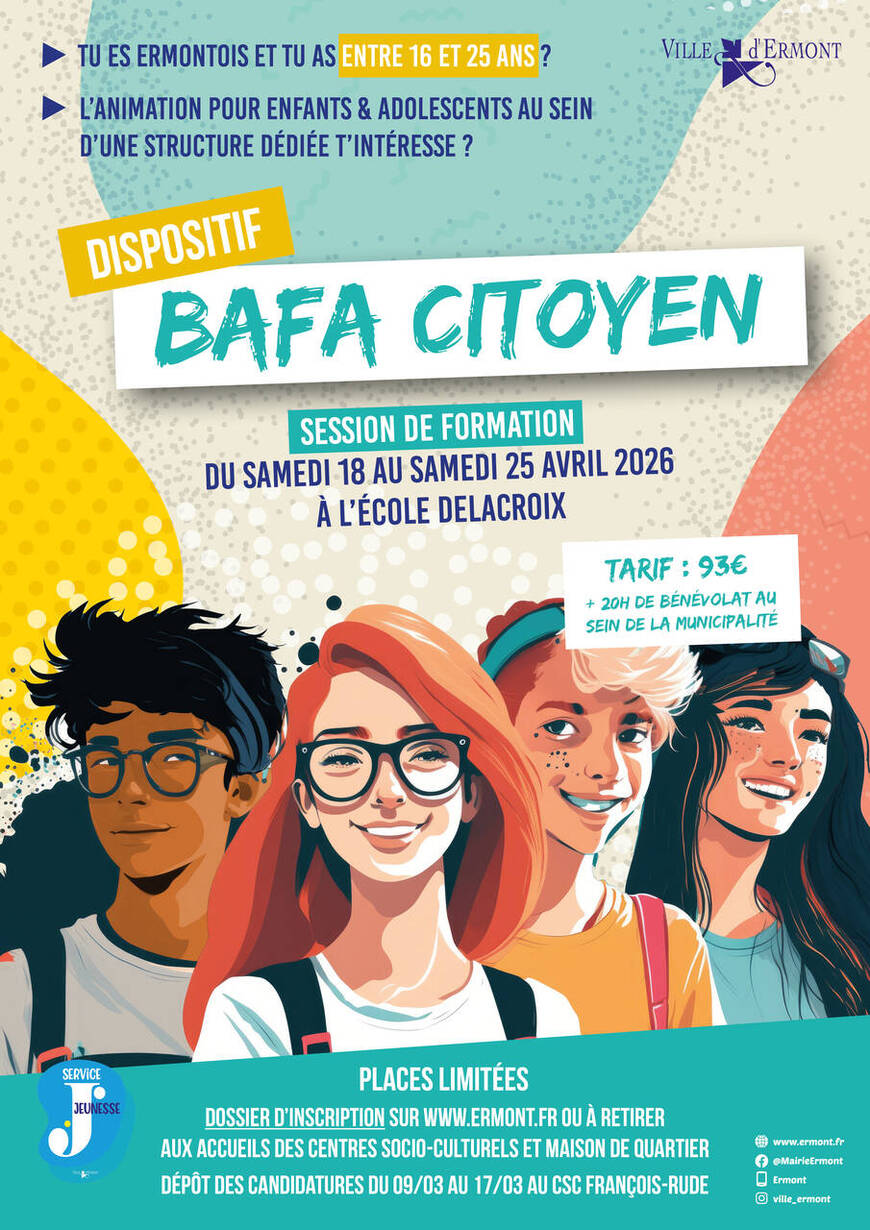 + d’infos : Service Jeunesse : 01 34 14 32 65 - jeunesse@ville-ermont.fr