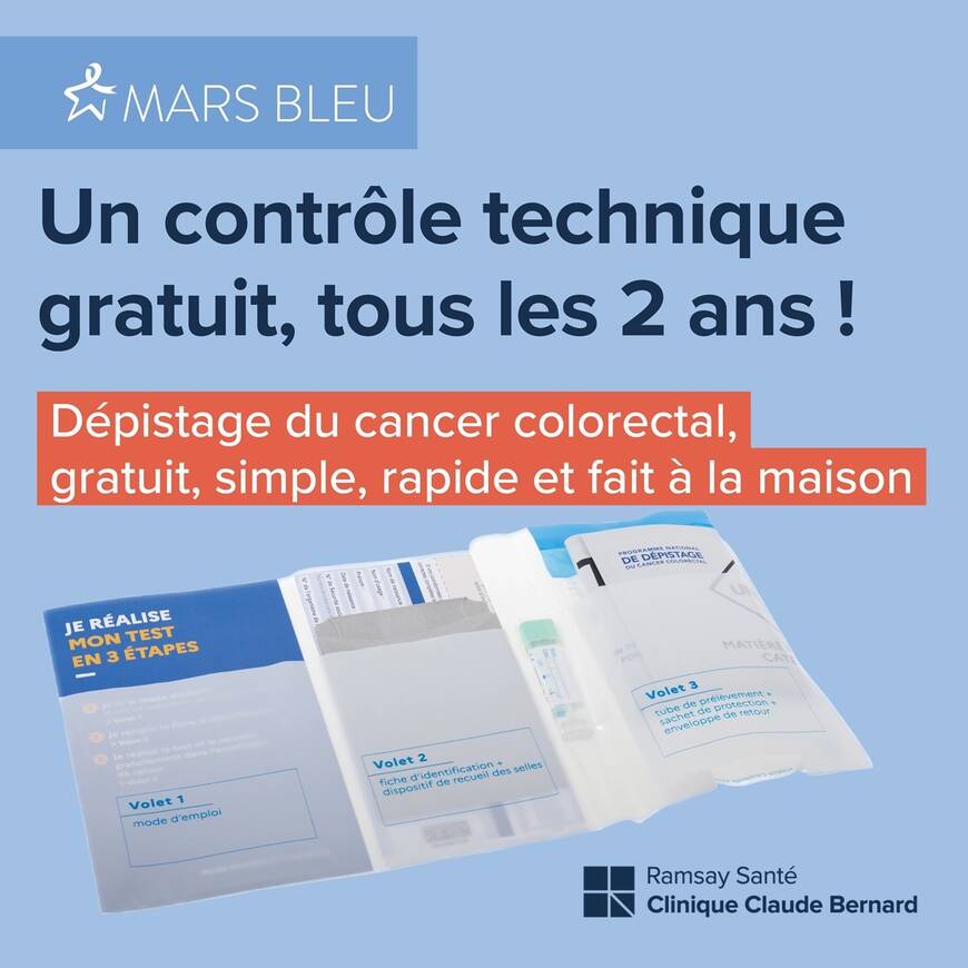Dans le cadre de “Mars bleu”, le mois du cancer colorectal, la Clinique Claude Bernard propose un stand d'information et de sensibilisation au dépistage dans le hall de l'établissement.