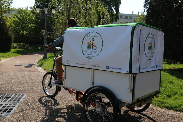 La genèse du projet: Tout a débuté en 2018, lors de l'élaboration de l'Agenda 2021/acte II ; l'un de ces objectifs principaux : réduire le gaspillage alimentaire, notamment dans les écoles. Par la suite, l'idée se développe en concertation avec les Ermontois, durant le forum citoyen annuel : un triporteur pour collecter les aliments non-consommés mais également les invendus des commercants, dans le but de ne pas jeter et d'en faire don aux personnes en difficulté. L'idée prend forme et la municipalité se rapproche de l'association Biocycle, qui a fait du relais alimentaire solidaire son cheval de bataille depuis 2013 et faire naître le triporteur anti-gaspi. |